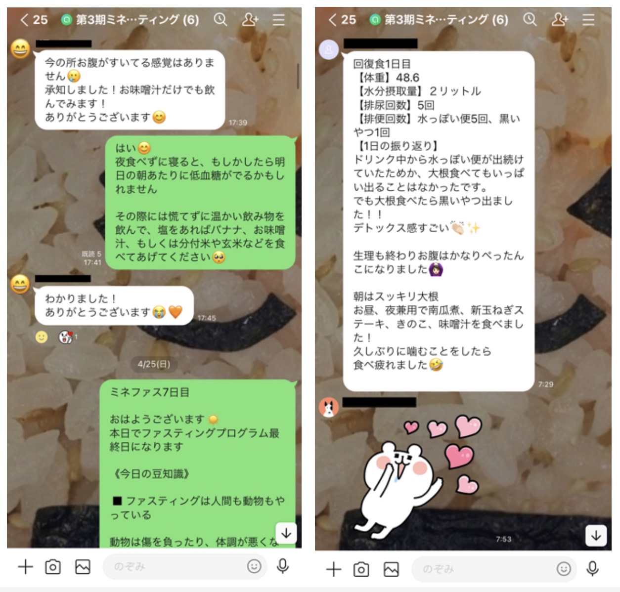 また、春和から毎朝ファスティング豆知識と報告へのフィードバック