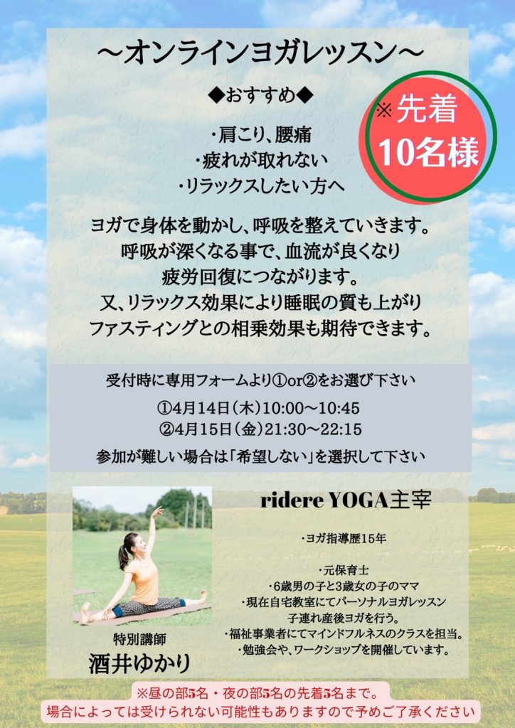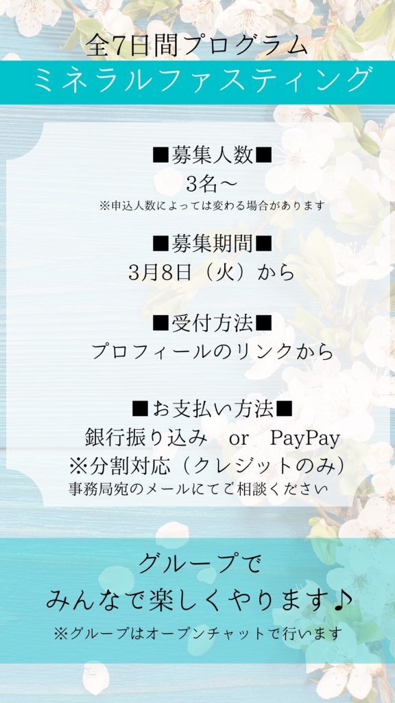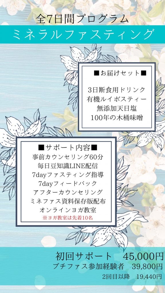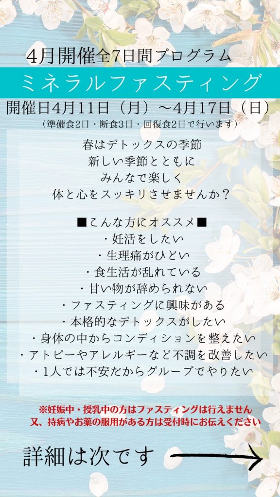 HOME > お知らせ > お知らせ 本格デトックスファスティング(2022年4月)開催のお知らせ 2022年3月10日 本格デトックスファスティング 募集受付期間 3月8日〜 開催期間 4月11日(月)〜4月17日(日) お申し込みはこちら 新月ファスティングについてこちらから Twitter Share Pocket Hatena LINE コピーする -お知らせ