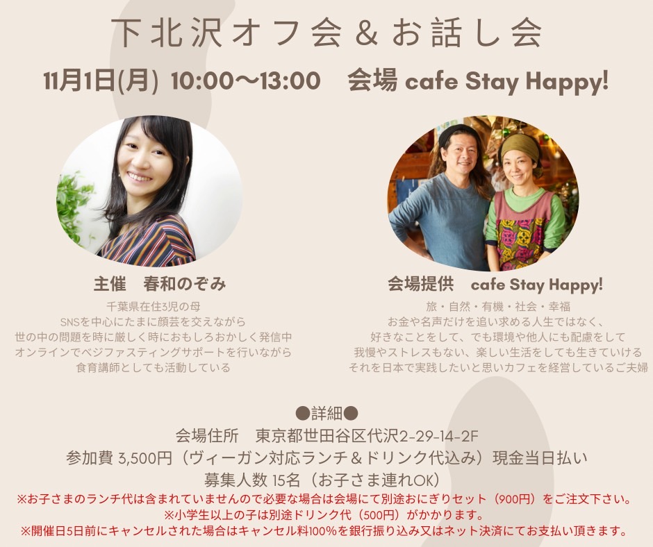 HOME > お知らせ > お知らせ 11月1日(月)下北沢オフ会&お話会 開催のお知らせ 2021年9月30日 沢山のお申込みありがとうございました。 募集人数に達しましたのでいったんお申込みを終了させて頂きます。 キャンセルなどで空きができた場合、再度募集をすることがあるかもしれません。 その際には改めて告知させて頂きますのでよろしくお願い致します。 Twitter Share Pocket Hatena LINE コピーする -お知らせ